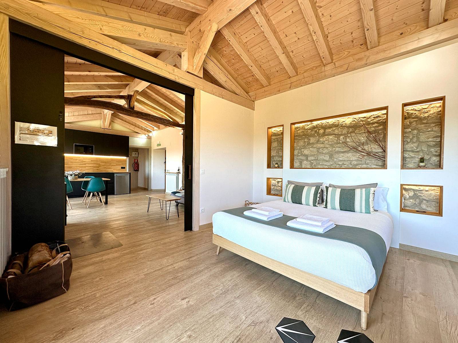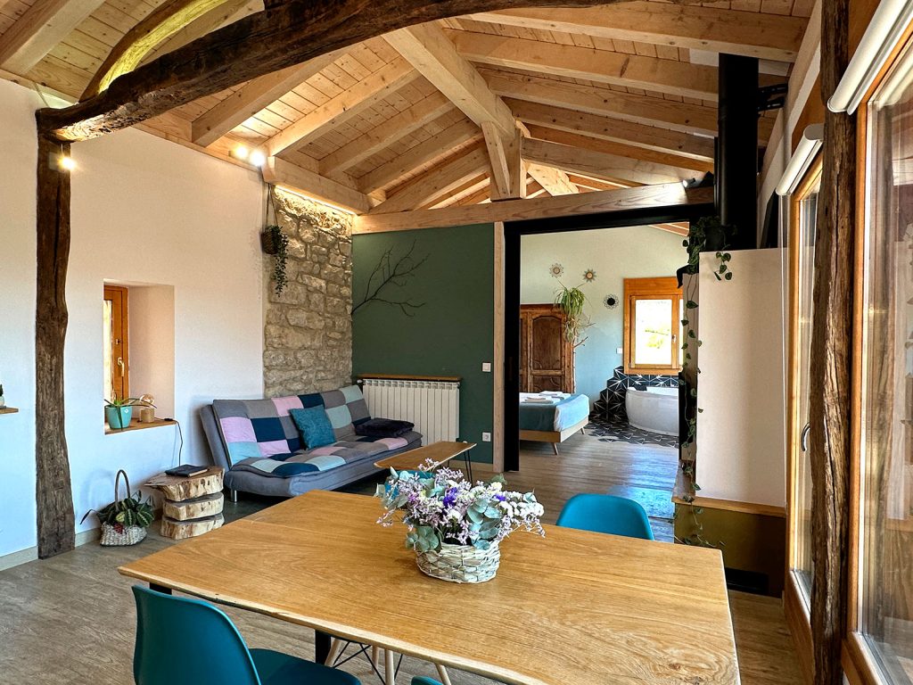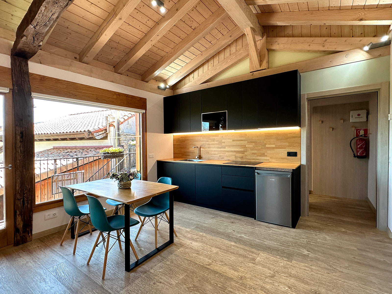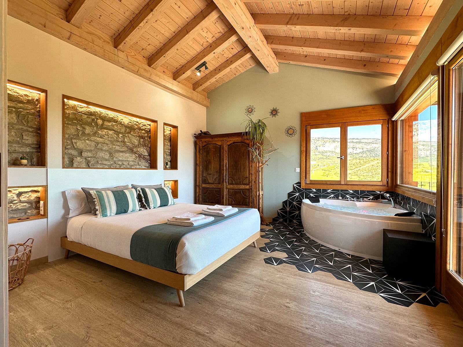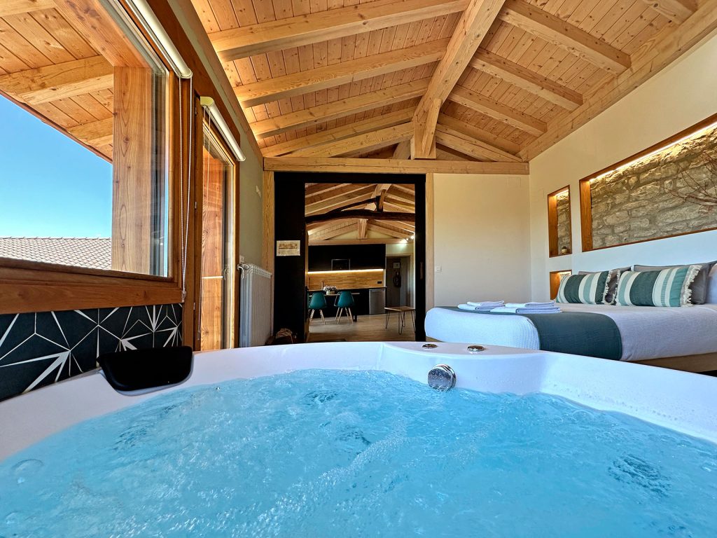 Capacidad máxima de 4 personas (2 + 2 supletorias). Dispone de amplia cocina-salón totalmente equipada, chimenea de leña, un baño y una habitación amplia con jacuzzi.