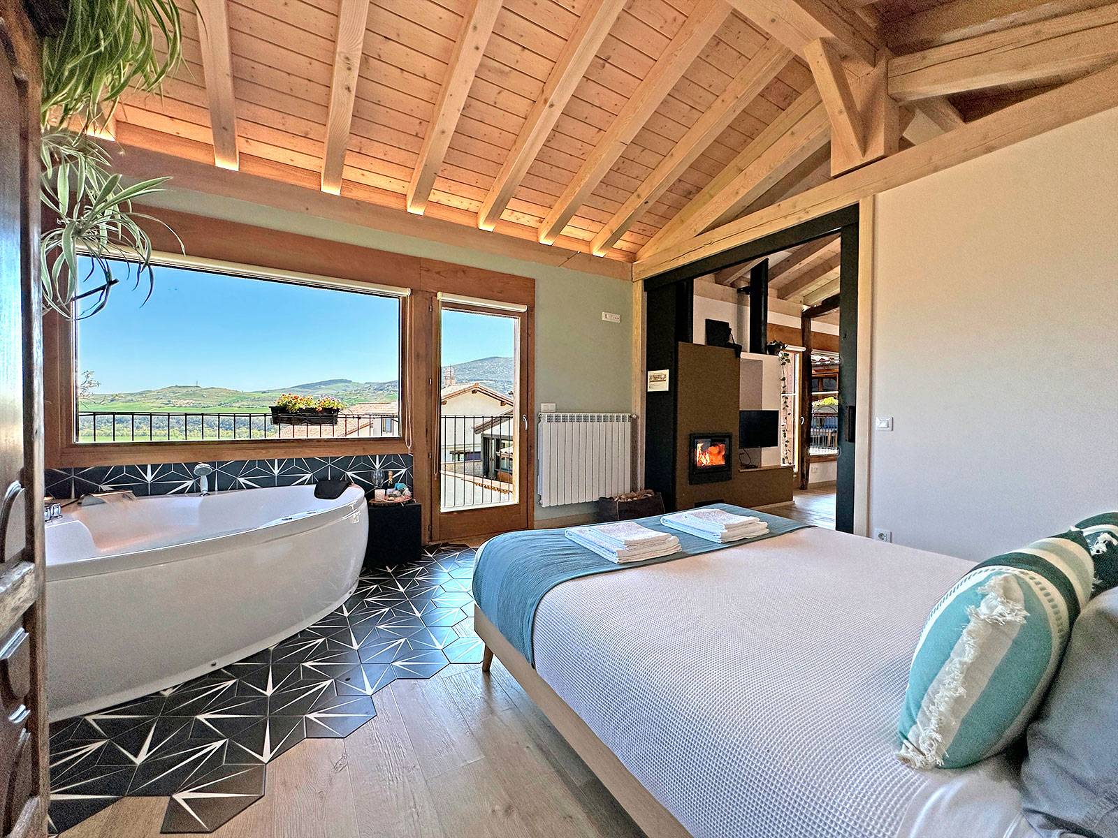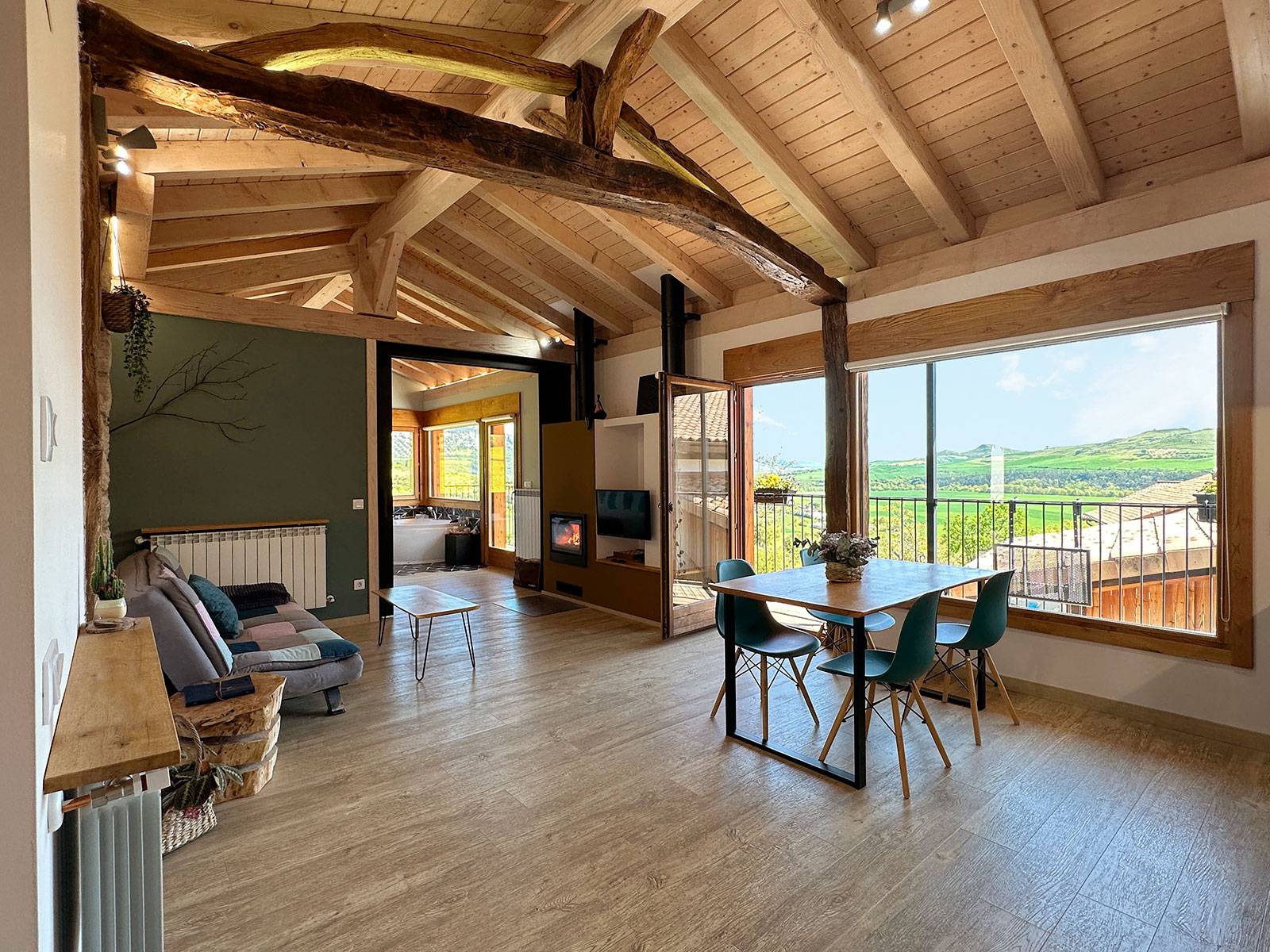 Amplio y luminoso apartamento con Jacuzzi. Desde sus grandes ventanales podremos disfrutar de unas de las mejores vistas al valle de Etxauri.